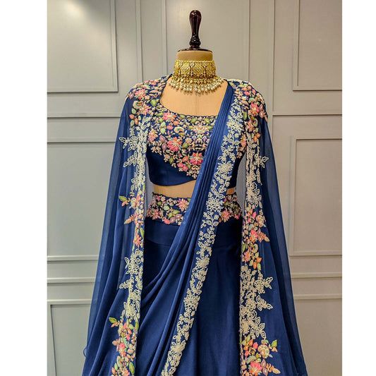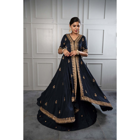 Navy Blue Cape Crepe set