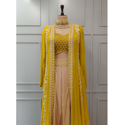 Yellow Crop top with Cape and Palazzo Pants