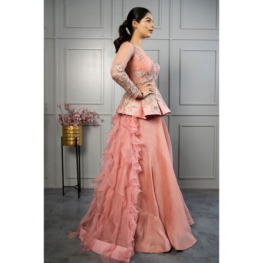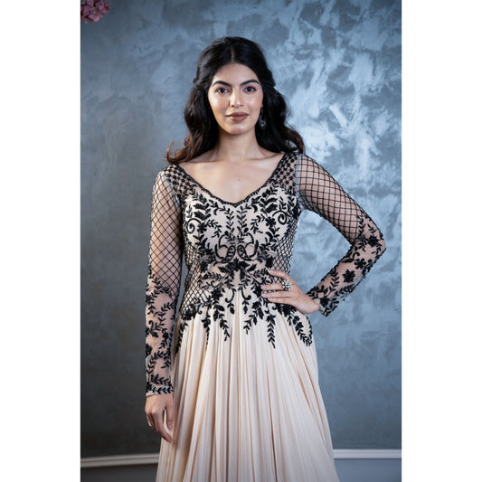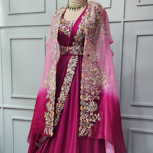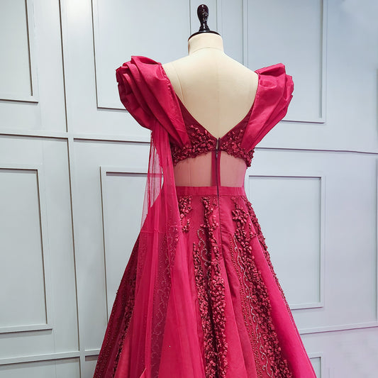 Zardozi & Aari Embroidered in Gold Off-White, and Rich Wine & Red Hues Lehenga